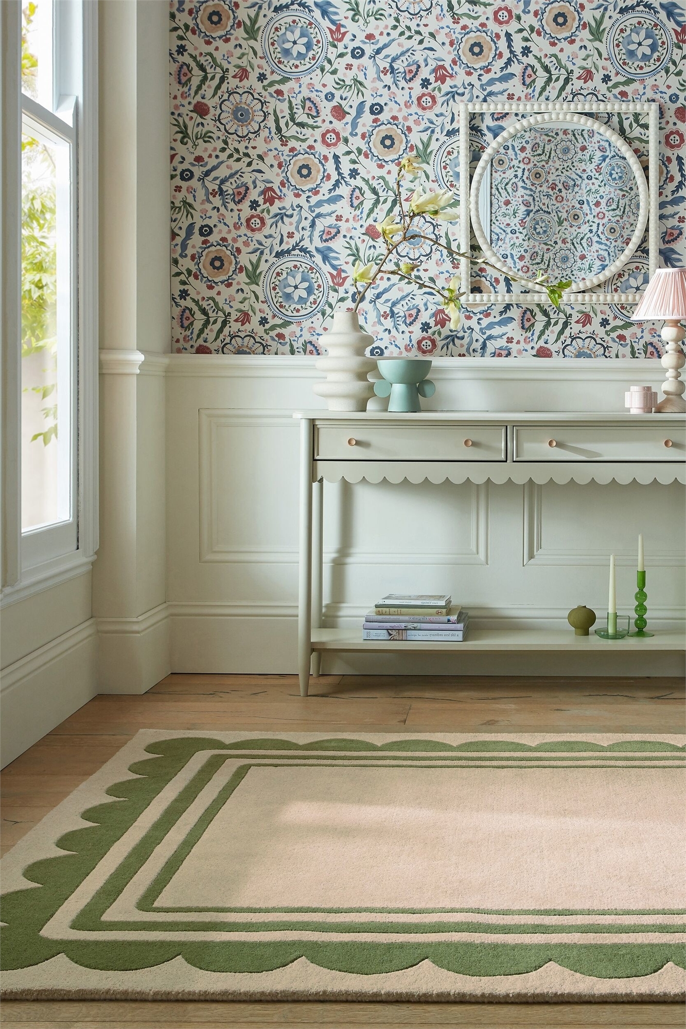 Современный вид с классическим влиянием - шерстяной ковер Lois Scallop Border станет обязательным элементом вашего дома. Благодаря вырезанным вручную линиям и форме гребешка этот коврик ручной работы предлагает элемент размерности. Изготовленный из 100% шерсти, ковер обеспечивает естественную звуко- и теплоизоляцию и практичен для мест с высокой проходимостью благодаря своей долговечности и устойчивости к естественным пятнам.
