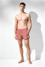 Шорты для плавания из нейлона с эластичным материалом и скрытым шнурком на талии, боковыми карманами, откидным задним карманом с застежкой на крючок и петлю и ногами, заканчивающимися выше колен, с небольшим разрезом по бокам. Внутренние шорты из мягкой сетки.