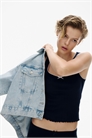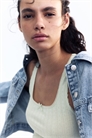 Короткий приталенный жилет-топ из мягкого трикотажа пуантель с глубоким круглым вырезом и маленьким декоративным атласным бантиком спереди. Аккуратная отделка пико по вырезу горловины и проймам, а также подол, обработанный оверлоком.