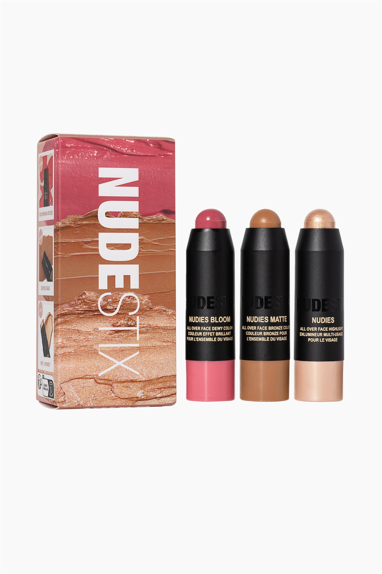 Мини-набор из трех предметов содержит наши бестселлеры, культовые мультипалочки NUDIES для глаз, щек и губ. Бронзер, румяна и сияние для путешествий. Удобный для путешествий размер поместится в любой сумке.