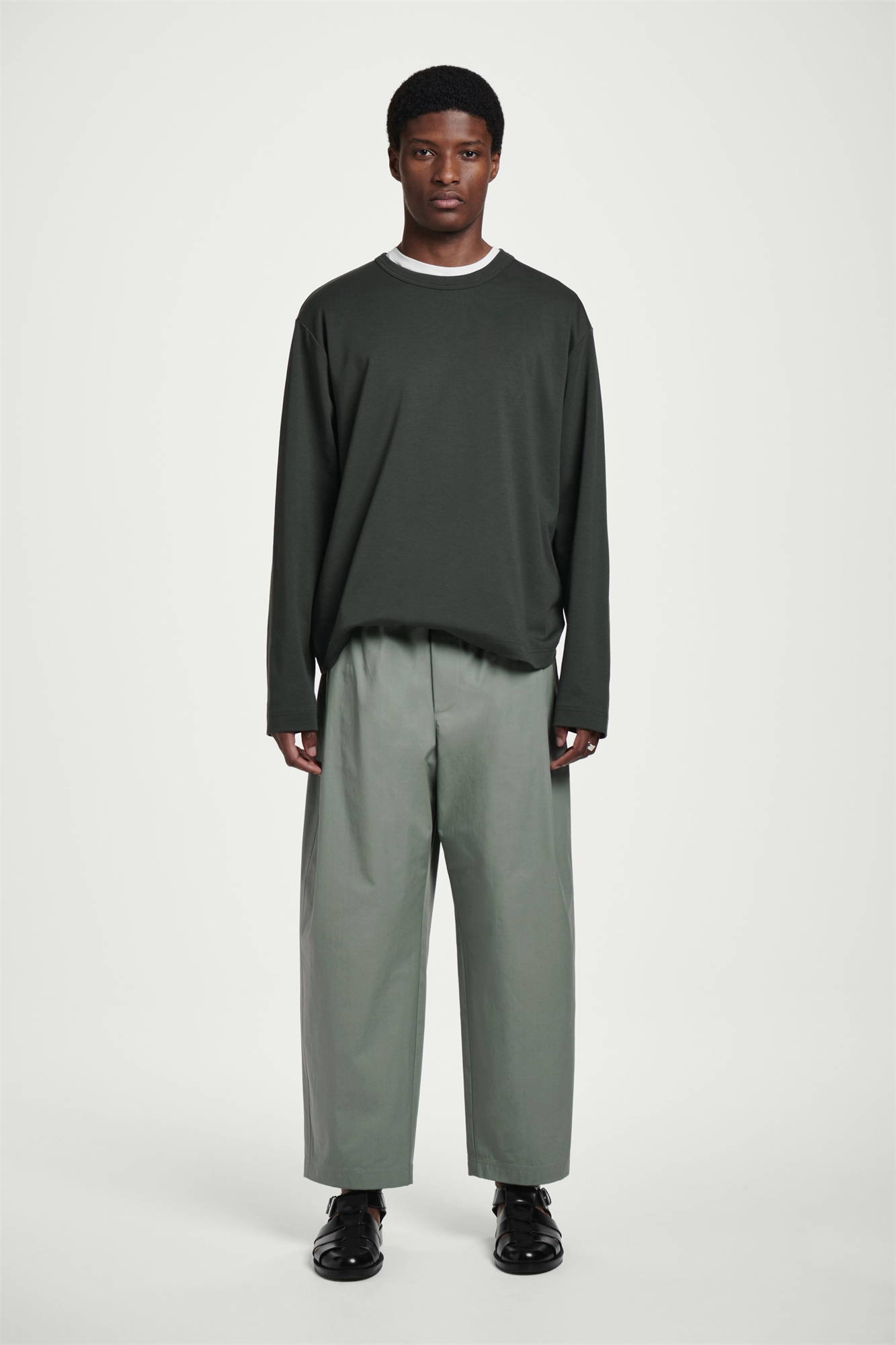 Эти брюки - предмет первой необходимости в современном мире - выполнены в непринужденной форме с широкими штанинами, обрезанными у щиколотки. Они изготовлены из мягкого и прочного хлопка, имеют эластичную талию и прорезные карманы. Свободный крой Материал: 100% хлопок. Без учета отделки / Машинная стирка Внутренняя длина штанины размера M составляет 63,9 см / Модель носит размер M