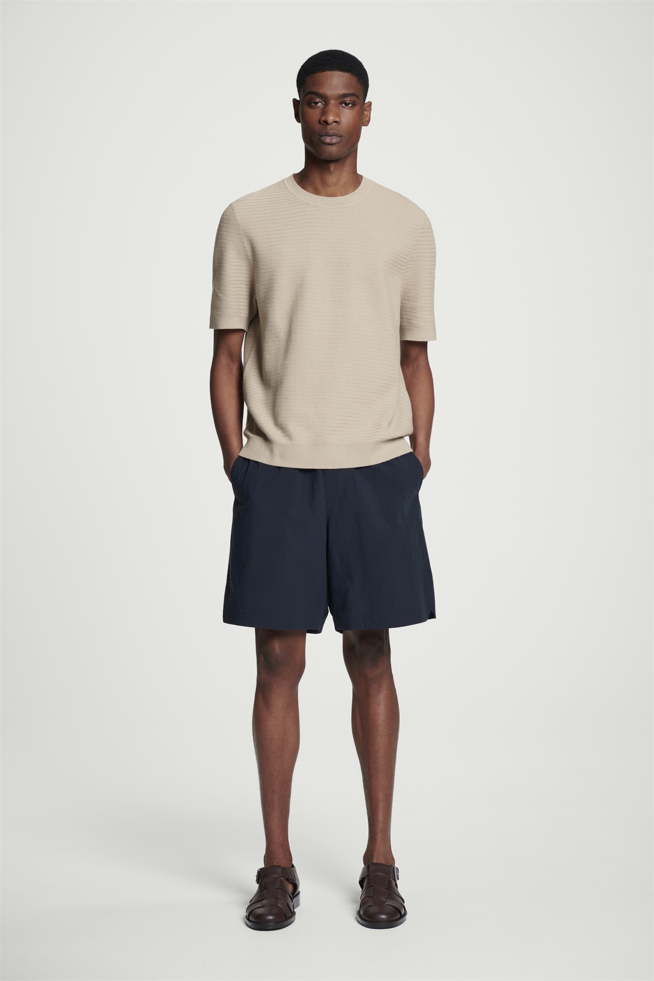 Эти шорты, созданные с акцентом на качественные материалы, изготовлены из хлопка пима для легкой и дышащей носки в жаркие месяцы. Они имеют эластичный пояс с внутренними завязками для индивидуальной посадки и три практичных кармана. Свободный крой Материал: 100% хлопок пима. Подкладка карманов: 100% хлопок. Без учета отделки / Машинная стирка Внутренняя длина штанины размера M составляет 19 см / Модель носит размер M