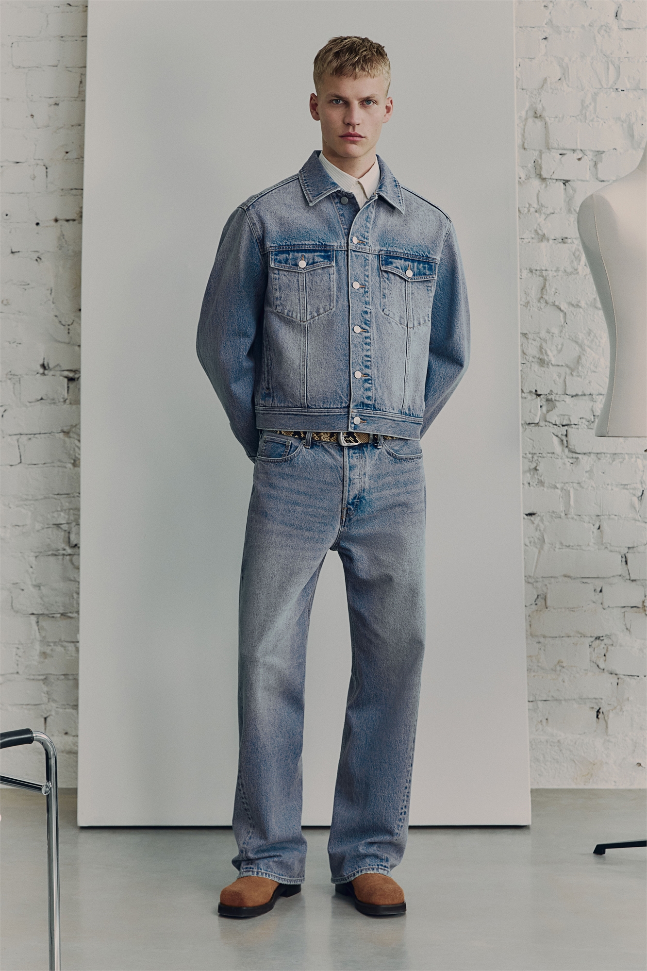 H&M Atelier. Джинсы с 5 карманами из жесткого хлопкового денима с прямыми штанинами и свободным кроем от сиденья до подола с опущенной промежностью, дополнительным пространством по всей ноге и стопкой у лодыжки. С подвернутыми швами, высокой талией и застежкой на пуговицу.