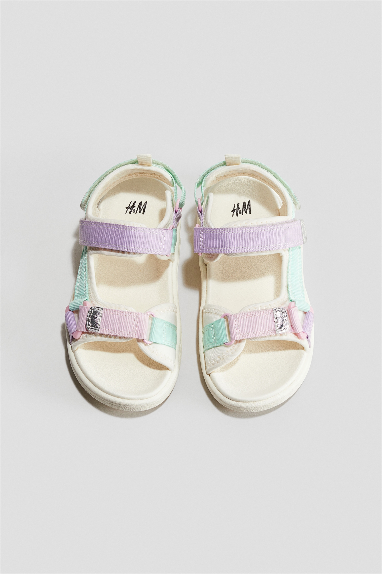 Сандалии из скубы с регулируемыми ремешками из гросгрейн с застежкой на крючок и петлю на стопе и вокруг лодыжки. Формованная подошва с рифленой поверхностью.