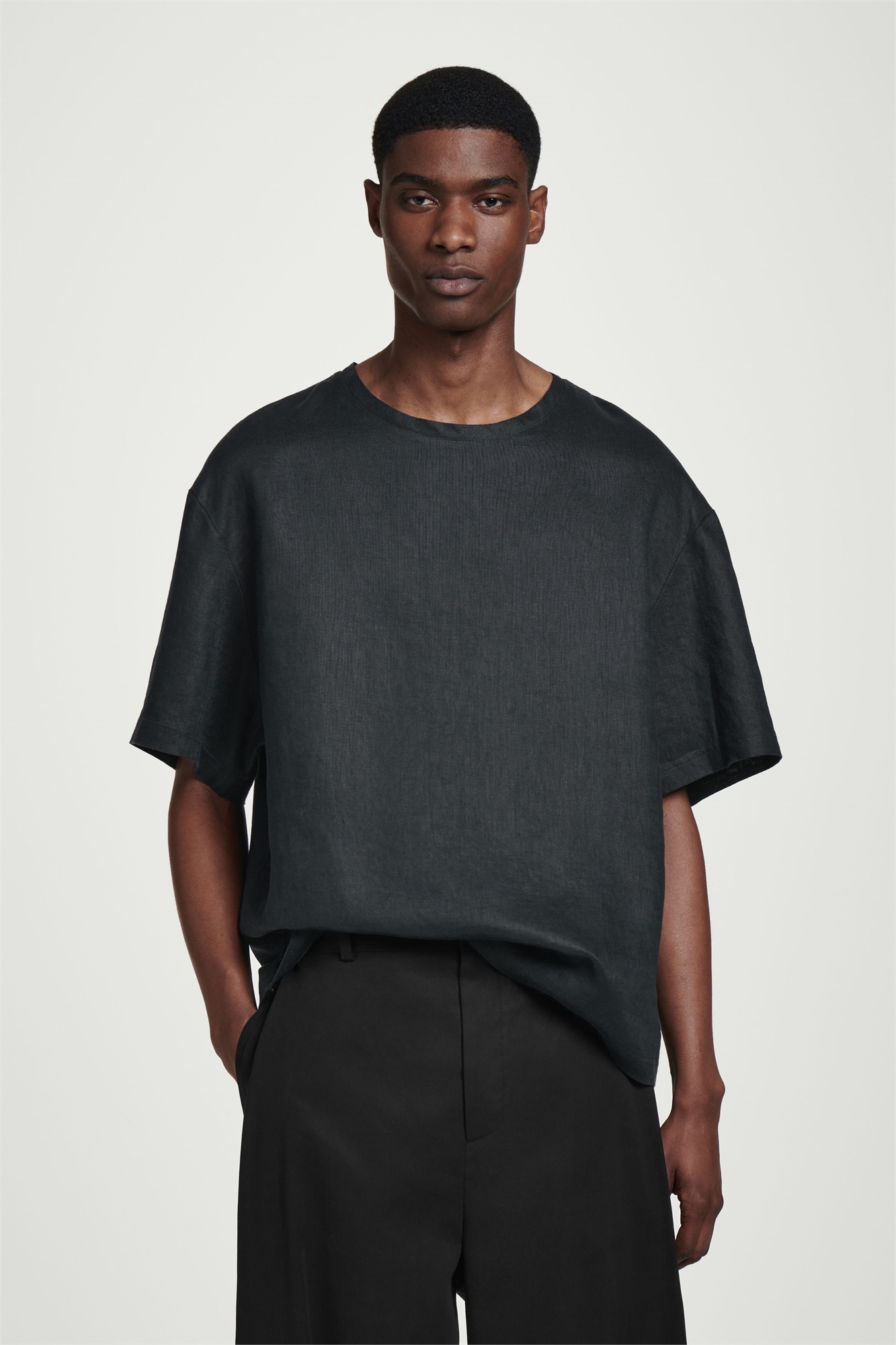 Эта футболка, созданная для лета, соткана из льна, который обладает естественной воздухопроницаемостью и приятным тактильным эффектом. Она имеет горловину, спущенные плечи и короткие рукава. Свободный кройПереработанный лен изготавливается из отходов прядильного производства или отходов раскроя ткани в процессе производства. Отходы механически перерабатываются и прядутся в новую пряжу Материал: 70% льна, 30% переработанного льна. Без учета отделки / Машинная стирка Длина по спинке для размера M составляет 68 см / Модель носит размер M