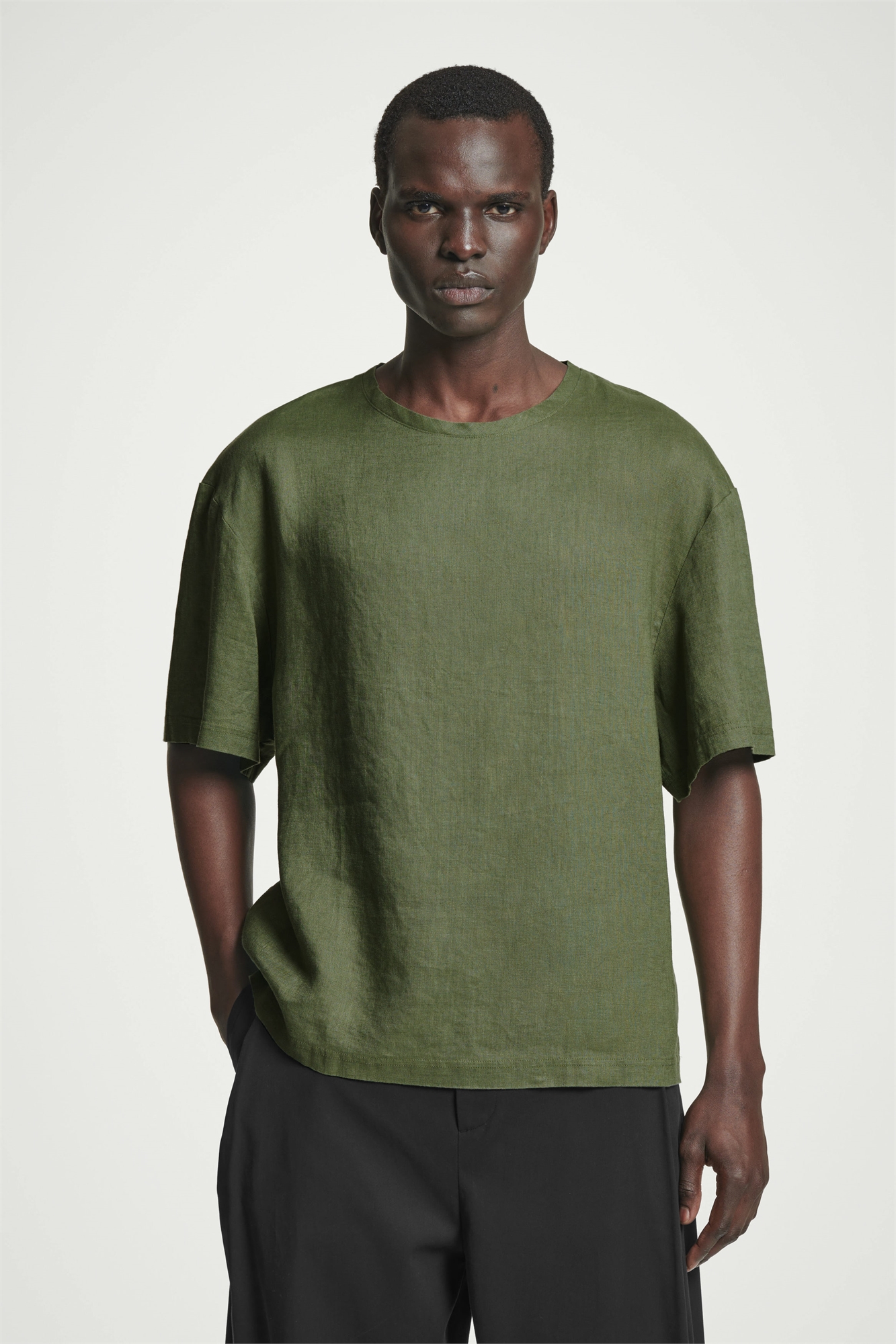 Эта футболка, созданная для лета, соткана из льна, который обладает естественной воздухопроницаемостью и приятным тактильным эффектом. Она имеет горловину, спущенные плечи и короткие рукава. Свободный кройПереработанный лен изготавливается из отходов прядильного производства или отходов раскроя ткани в процессе производства. Отходы механически перерабатываются и прядутся в новую пряжу Материал: 70% льна, 30% переработанного льна. Без учета отделки / Машинная стирка Длина по спинке для размера M составляет 68 см / Модель носит размер M