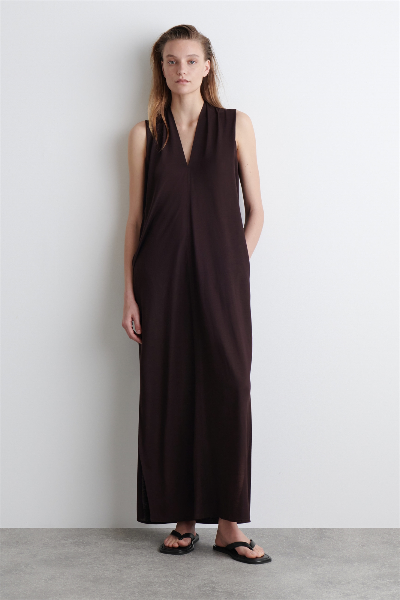 Это изысканное платье представляет собой современный взгляд на коды одежды для торжественных случаев. Оно создано из эластичного материала TENCEL™ Lyocell и имеет драпировку, которая обволакивает плечи и V-образный вырез. Наденьте его с сандалиями и клатчем для вечернего вечера. Regular fitSlip pocketsTENCEL™ является торговой маркой Lenzing AG. TENCEL™ Lyocell производится из возобновляемых источников древесины с использованием процесса, в котором перерабатывается 99% всех химических веществ и воды Материал: 100% TENCEL™ Lyocell. Без учета отделки / Машинная стирка Длина по спинке для размера S составляет 141,5 см / Модель носит размер S