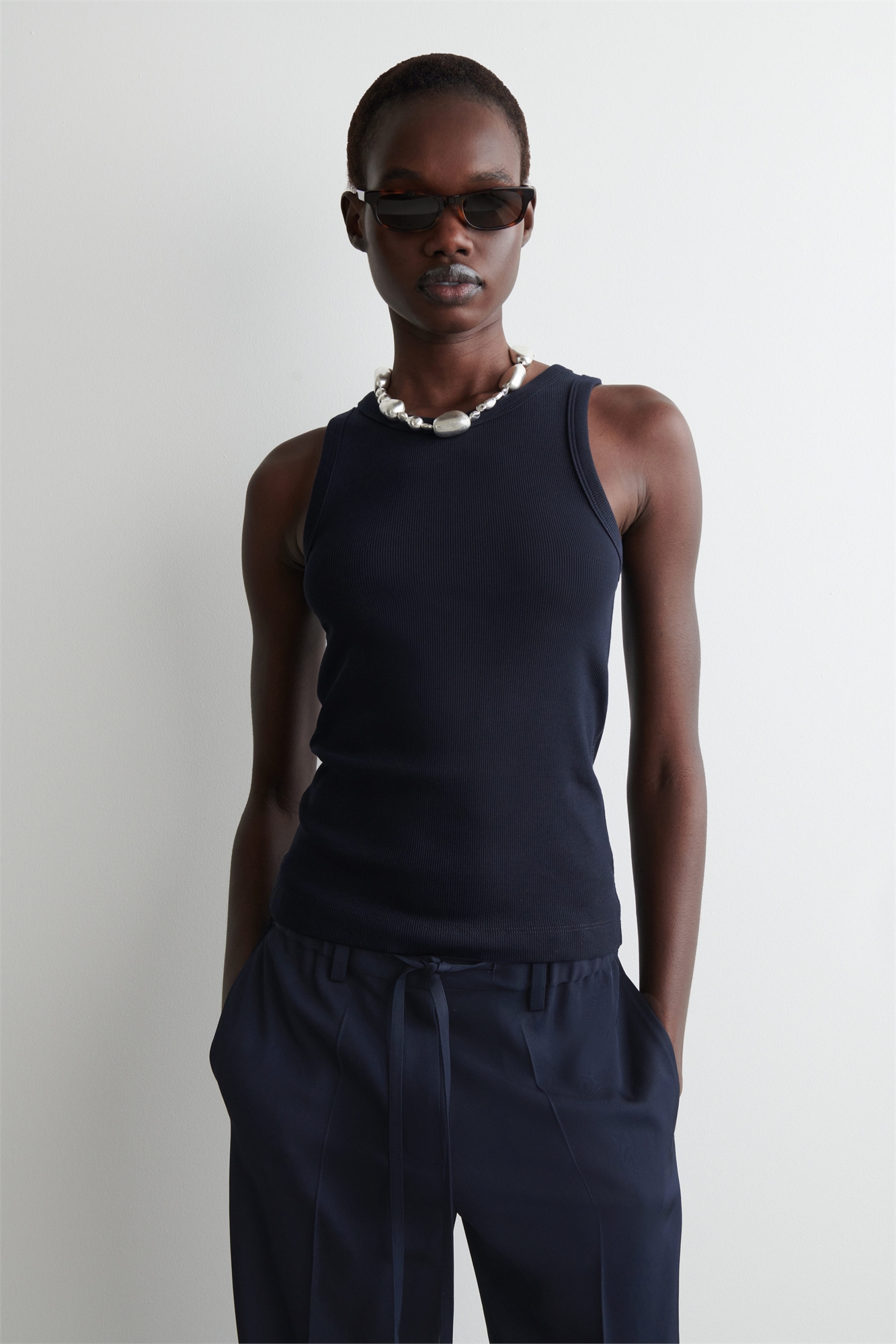 Непринужденная вещь, майка COS - основа капсульного гардероба. Эта модель сшита из ребристого хлопка-джерси с едва заметной эластичностью и имеет зауженный крой, который идеально подходит для многослойности. Носите его отдельно или надевайте под рубашки и блейзеры. Зауженный крой Ткань: 95% хлопка, 5% эластана. Без учета отделки / Машинная стирка Длина по спинке для размера S составляет 54 см / Модель носит размер S