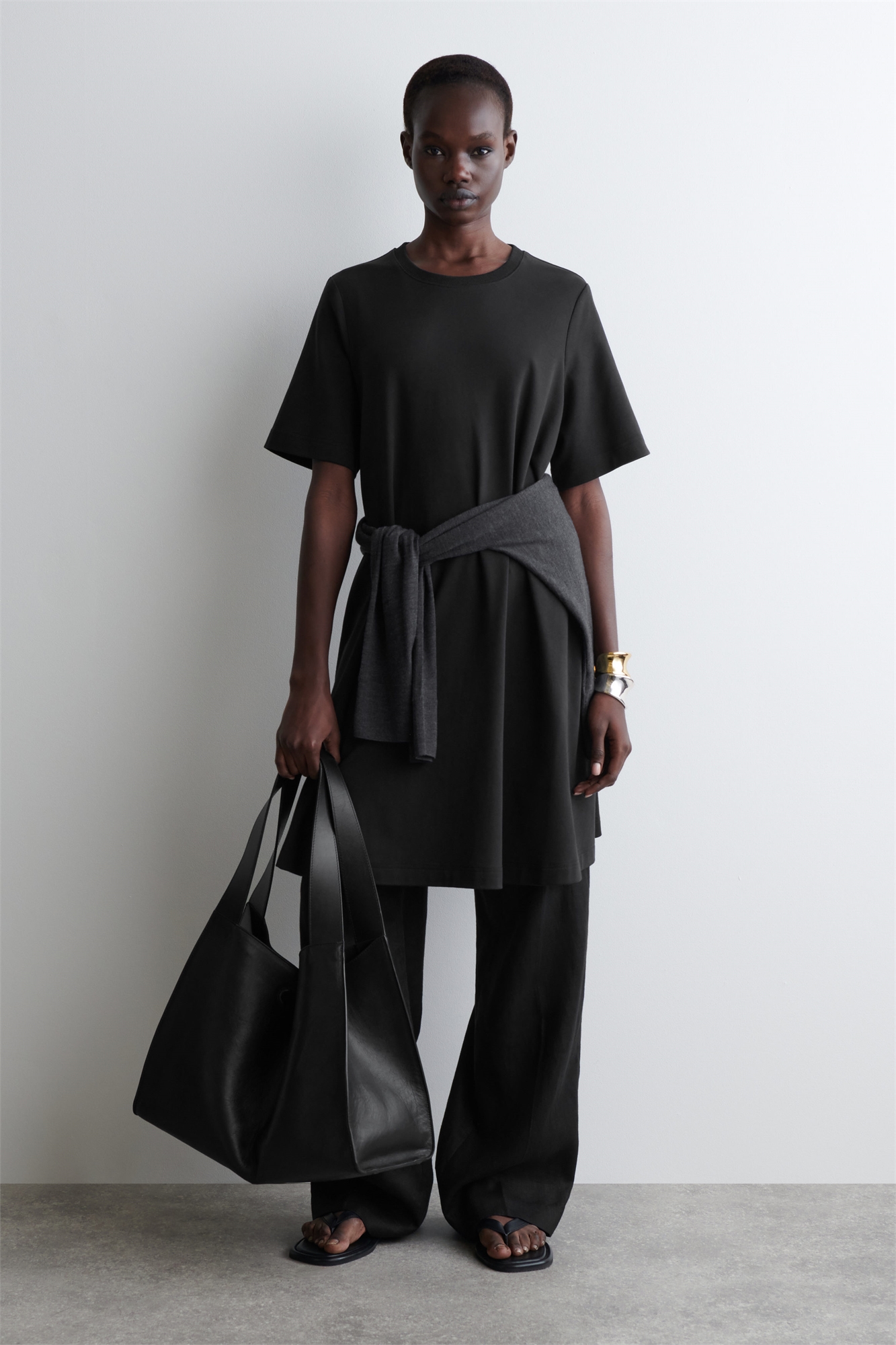 Это современное платье-футболка, созданное из натурального дышащего хлопка и выполненное в непринужденном силуэте, - идеальный вариант для жарких дней. Оно имеет А-линию, которая придает ему воздушность, и дополнено втачными карманами по обеим сторонам. Расслабленный крой Шелл и риб: 100% хлопок. Без учета отделки / Машинная стирка Длина по спинке для размера S составляет 89,3 см / Модель носит размер S