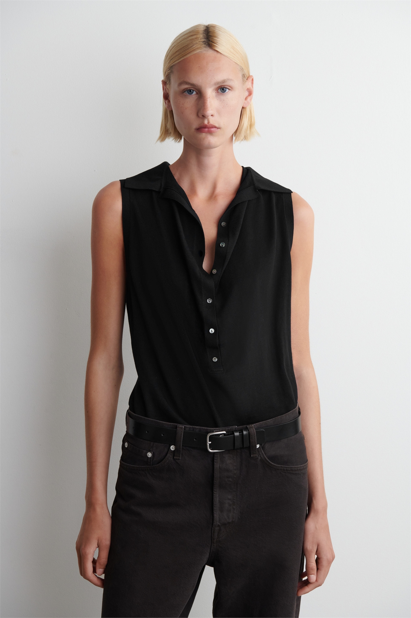 Этот топ-поло без рукавов напоминает о спортивном отдыхе в стиле 80-х годов. Вязаный из премиальной смеси переработанного шелка тутового дерева и хлопка, он имеет открытый воротник, перламутровые пуговицы и тонкую драпировку спереди. Обычный кройЗастежка на пуговицыАльтернатива обычному шелку, переработанный шелк изготавливается из отходов до переработки Материал: 55% переработанный шелк тутового дерева, 45% хлопок. Без учета отделки / Машинная стирка Длина по спинке для размера S составляет 63 см / Модель носит размер S