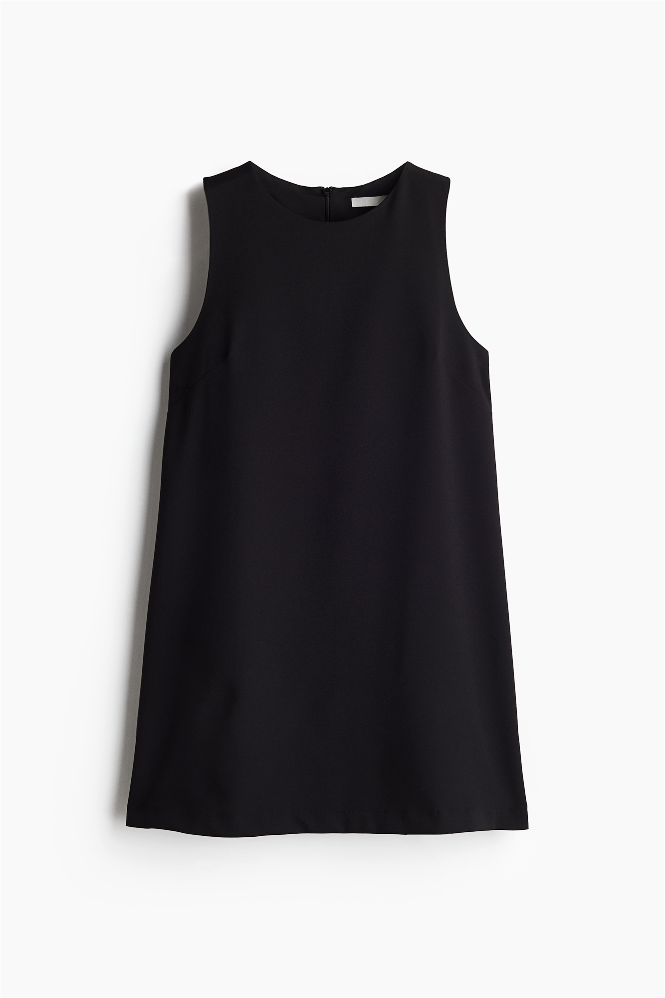 Короткое платье без рукавов из тканого материала с приталенным силуэтом А-линии. Круглый вырез, потайная застежка-молния сзади и нагрудные вытачки для приталенного покроя. Частично на подкладке.