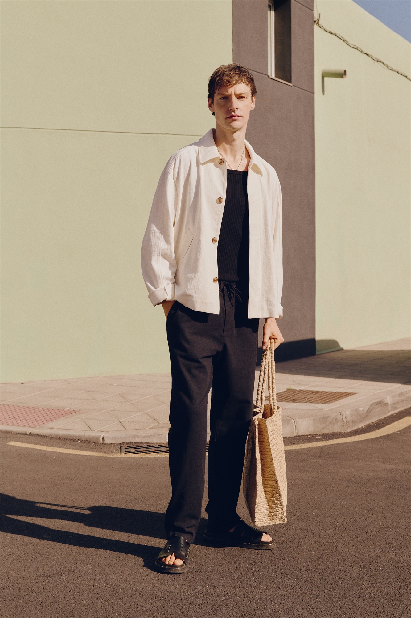Короткий жакет из смеси хлопка и льна с мягким плетением, воротником, потайными пуговицами спереди и диагональными втачными карманами спереди. Регулярный крой для комфортной носки и классического силуэта. На подкладке.