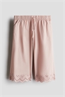 Брюки длиной до щиколотки из мягкого хлопкового поплина с рисунком "бродери англез". Свободный крой с эластичным поясом, диагональными боковыми карманами и широкими ногами с обрезанными краями.