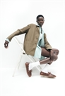 Свободный пиджак из хлопкового холста с лацканами с вырезом, пуговицами спереди и ярмом сзади. Накладные нагрудные и передние карманы. На подкладке.