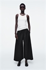 Эти кюлоты из воздушного хлопка с нежной текстурой "сирсакер" - прелюдия к теплым месяцам. Они имеют объемный покрой с широкими штанинами и эластичную талию с внутренними завязками для удобной посадки. Подойдите к ним с сандалиями или мюлями. Свободный кройБоковые накладные карманы Материал: 95% хлопок, 5% эластан. Без учета отделки / Машинная стирка Внутренняя длина ноги размера EU 36 составляет 59 см / Модель носит размер EU 36