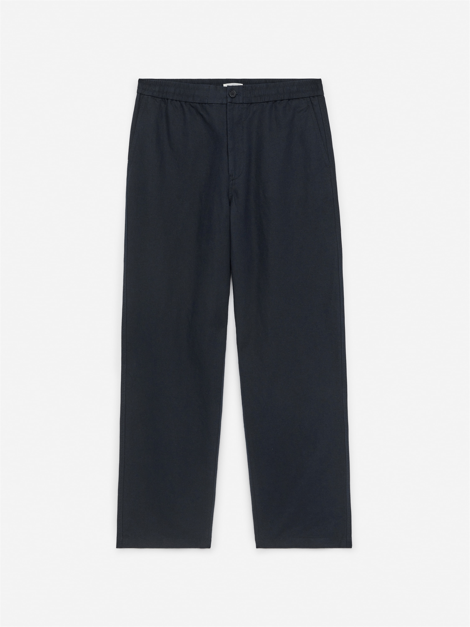 Брюки сшиты из смеси льна. Эластичный пояс с утягивающим шнурком на внутренней стороне, застежка на пуговицах и ширинка на молнии. Косые карманы спереди и втачные карманы сзади. Регулярный крой.