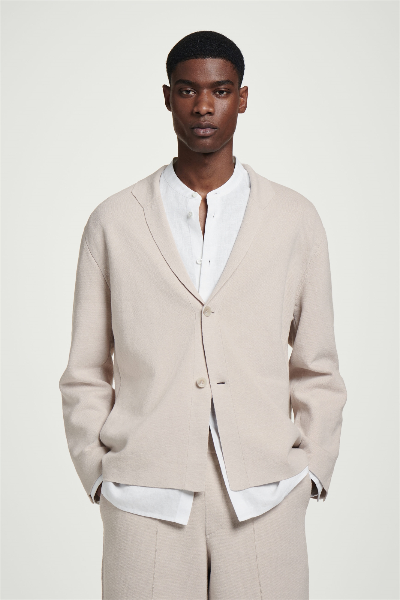 Команда мужской моды модернизирует классический пошив одежды для сезона весна-лето 2025. Этот однобортный блейзер связан в Милане из легкой льняной смеси с нотками хлопка и имеет непринужденный покрой с узкими лацканами, манжетами на пуговицах и карманами по обеим сторонам. Дополните его подходящими шортами. Свободный кройЗастежка на пуговицах Материал: 63% льна, 23% хлопка, 13% полиамида (нейлон), 1% эластана. Ребро: 100% переработанный эластан. Без учета отделки / Машинная стирка Длина по спинке для размера M составляет 70,5 см / Модель носит размер M