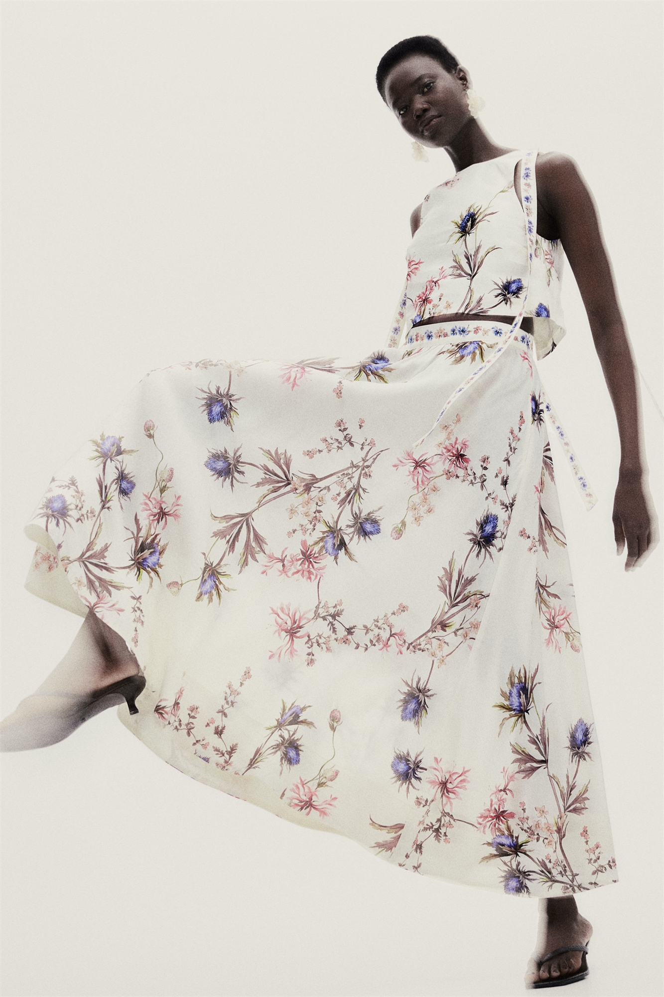 Длинная юбка в форме круга из смеси льна и вискозы. Высокая талия, застежка на потайную молнию и крючок с глазом с одной стороны. Без подкладки.