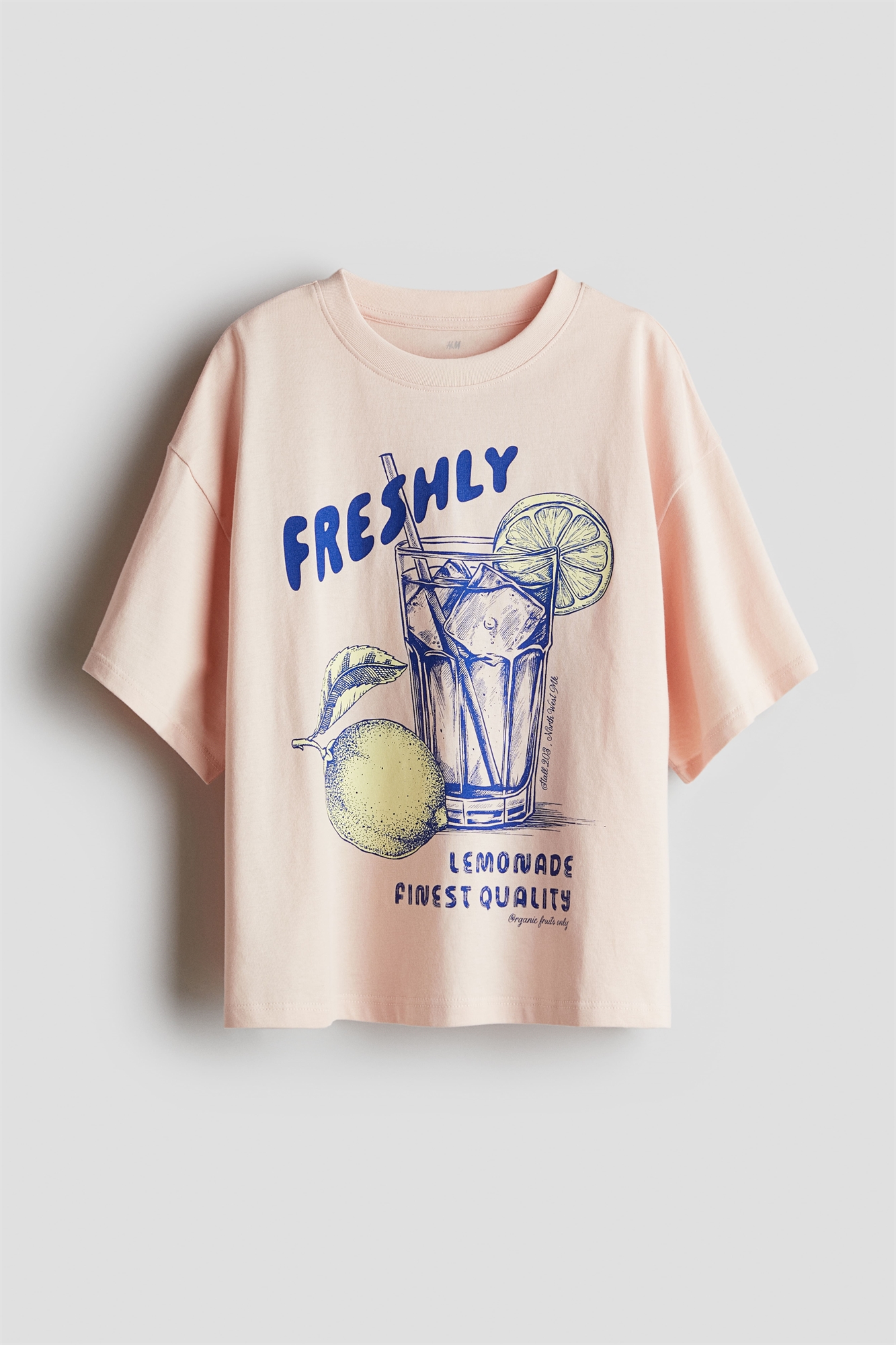 Футболка оверсайз из мягкого хлопкового джерси с принтом, круглым вырезом с ребристой отделкой, спущенными плечами и прямым покроем.