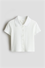 Короткий топ из мягкого ребристого трикотажа с воротником, пуговицами спереди и короткими рукавами.