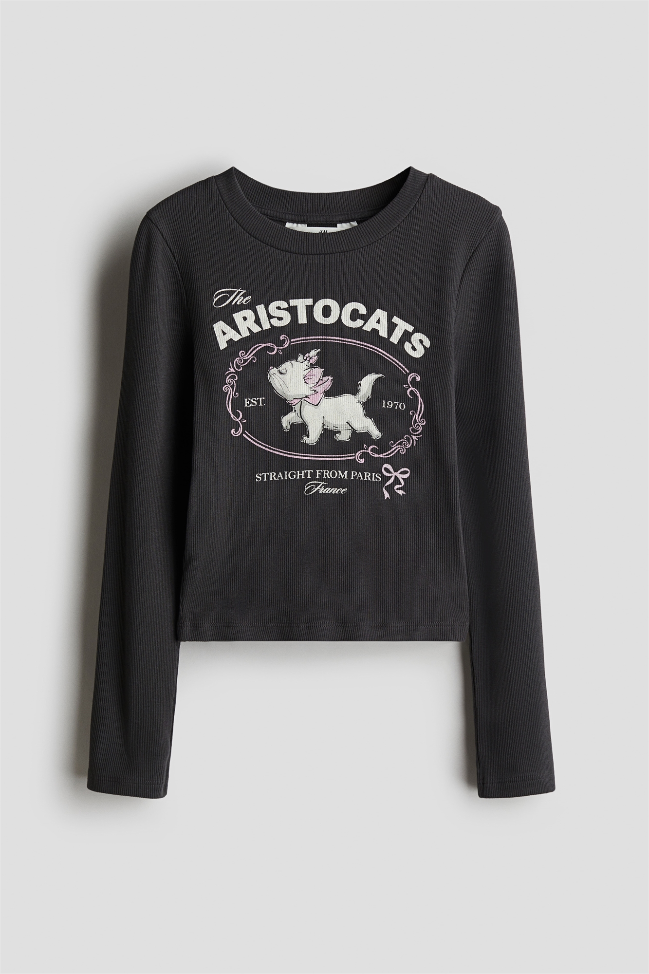 Топ из тонкого ребристого хлопкового джерси с принтом спереди. Круглый вырез и длинные рукава.