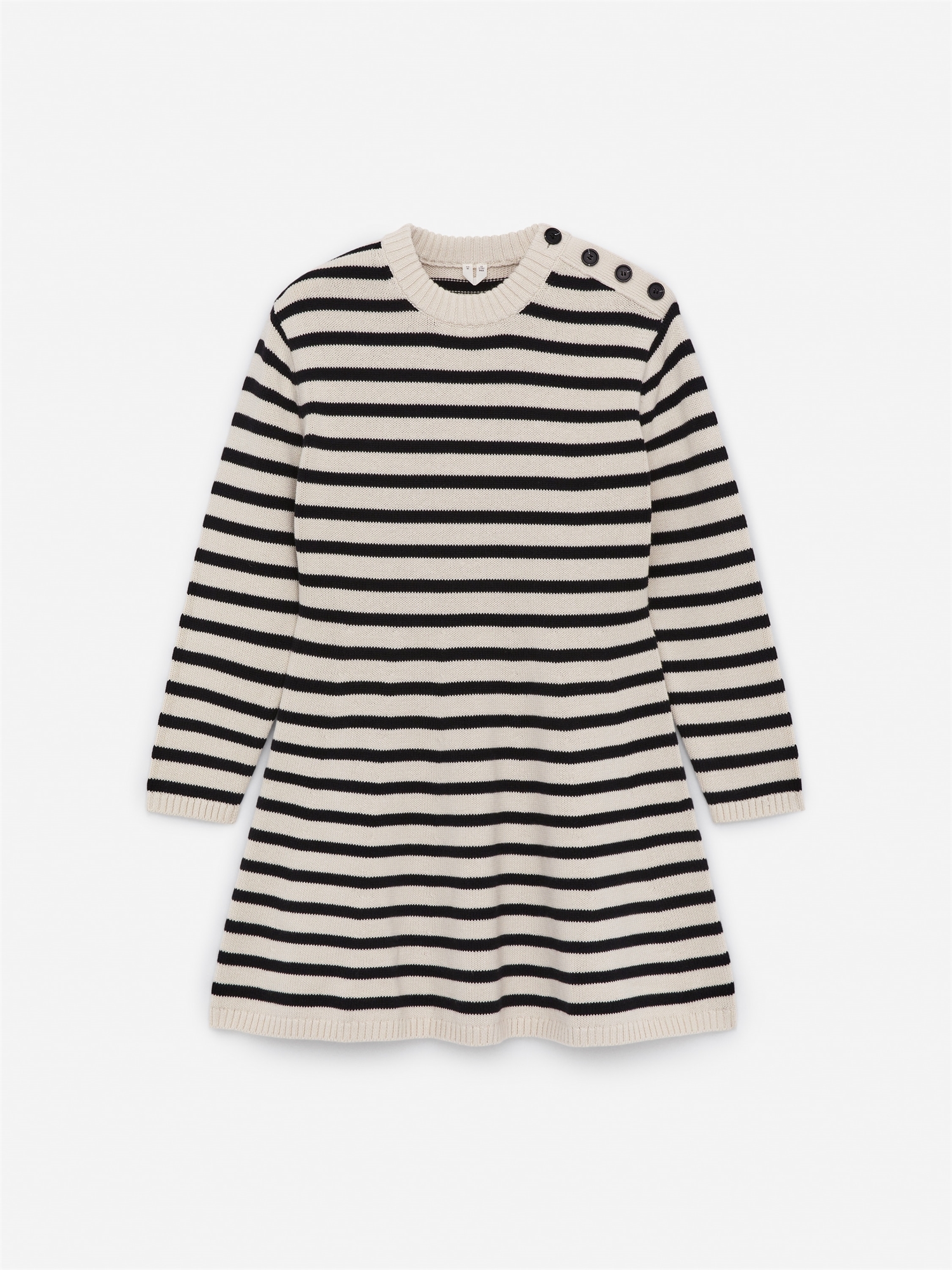 Платье из трикотажного хлопка с юбкой А-линии и длинными рукавами. Ребристая отделка и застежка на пуговицах сбоку от выреза. Обычный крой.