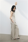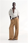 Свободные брюки из тканого материала из смеси льна и вискозы. Высокая талия, ширинка на молнии, потайная застежка на пуговицах и крючках. Диагональные боковые карманы, втачные задние карманы и широкие ноги с передними складками и складками спереди и сзади.