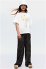 Брюки из мягкого фактурного трикотажа с эластичным поясом и прямыми ногами.