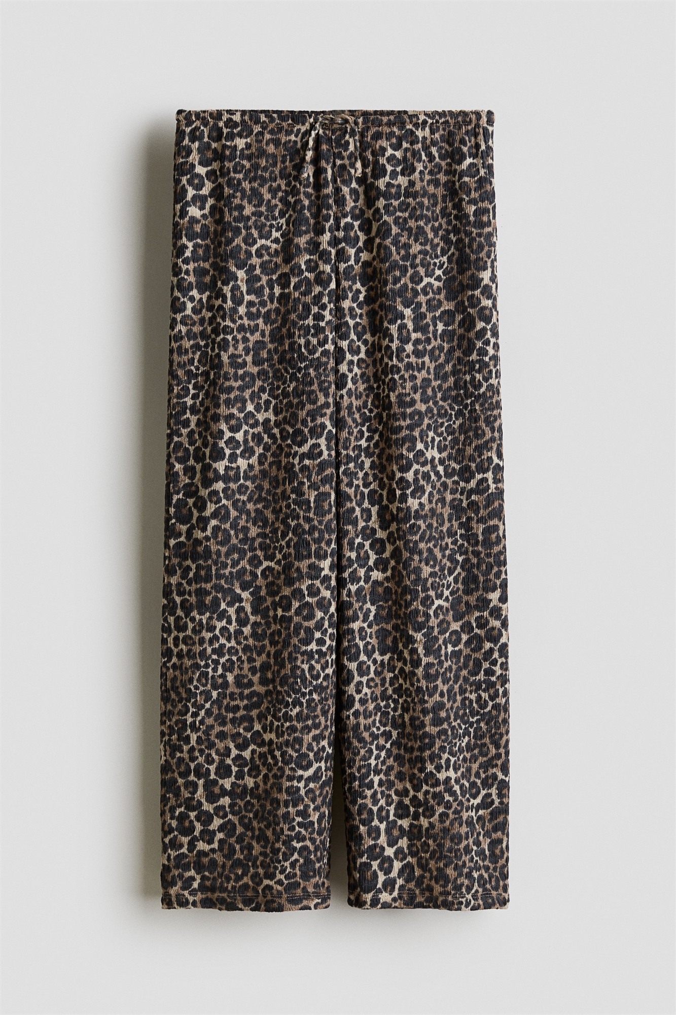 Брюки из мягкого фактурного трикотажа с эластичным поясом и прямыми ногами.