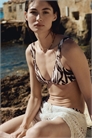 Треугольный бикини на подкладке с регулируемыми бретелями и чашечками со съемными вкладышами, которые формируют бюст и обеспечивают хорошую поддержку. Завязки сзади.
