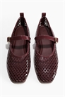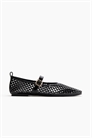 Перфорированные балетки в стиле Мэри Джейн из ткани с покрытием. Закругленные мыски, регулируемый ремешок на ноге с металлической пряжкой и петлей сзади.