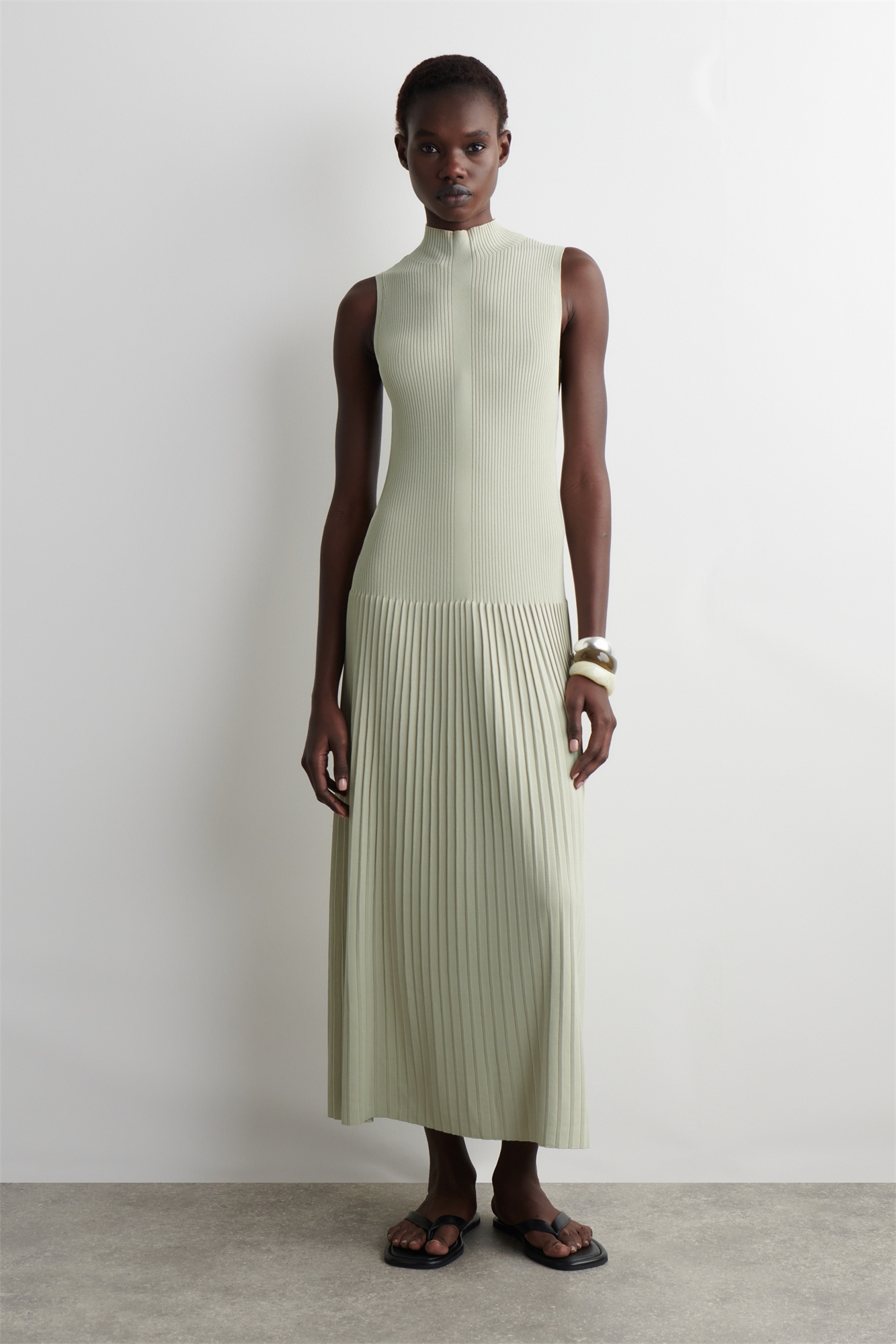 Команда женской одежды обновляет коды вечерних нарядов для сезона весна-лето 2025. Это изысканное трикотажное платье с высоким вырезом, ребристым лифом без рукавов и плиссированной юбкой макси. Дополните его скульптурными украшениями и туфлями на каблуках. Regular fitПереработанный нейлон (полиамид) снижает потребность в ограниченных природных ресурсах и сокращает выбросы парниковых газов Состав: 64% вискоза, 33% хлопок, 2% переработанный полиамид (переработанный нейлон), 1% переработанный эластан. Без учета отделки / Машинная стирка Длина по спинке для размера S составляет 125 см / Модель носит размер S