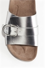 Сандалии из ткани с покрытием. С косыми носками и широким регулируемым ремешком с металлической пряжкой. Атласная подкладка и формованная стелька.