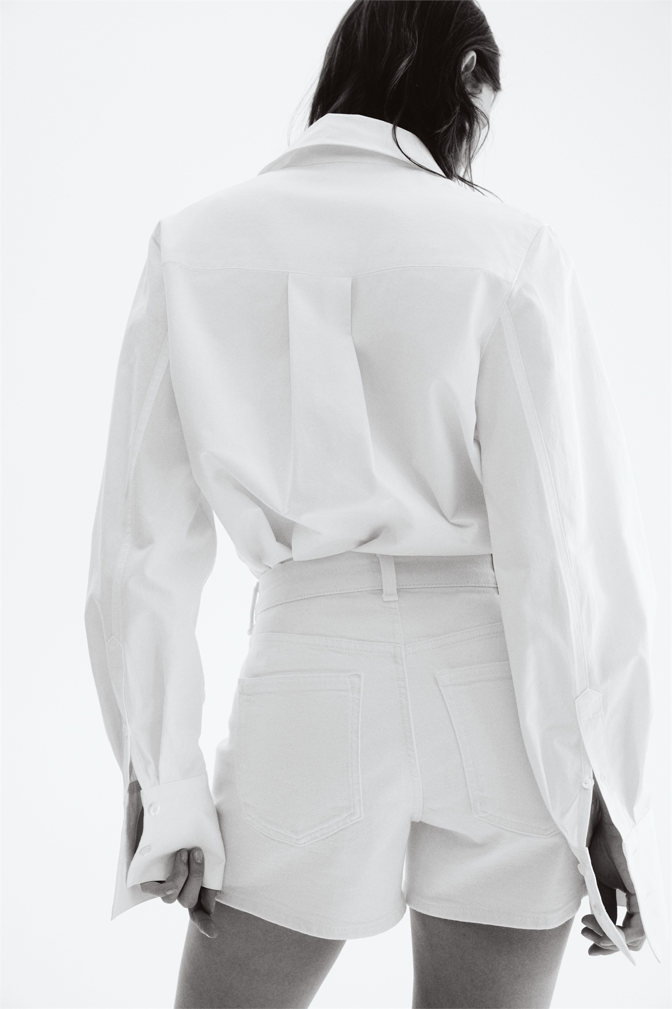 Шорты с 5 карманами из хлопкового денима с легким стретчем. Регулярная талия, застежка на молнию и пуговицу.