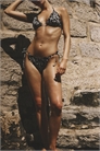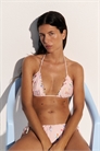 Треугольный бикини на подкладке с чашечками со съемными вставками, которые формируют бюст и обеспечивают хорошую поддержку. Узкая эластичная резинка и оверлочные швы по верхним краям для создания эффекта оборки. Завязки сзади и на шее.