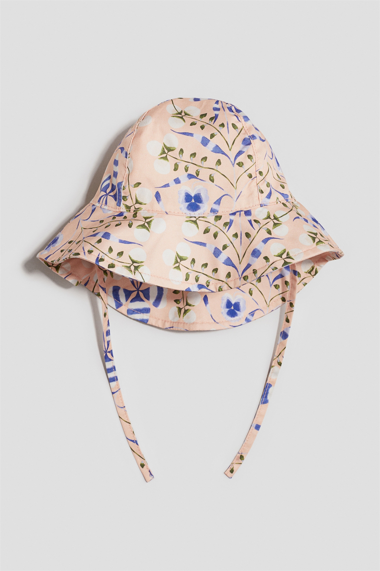 H&M x Georgia Beaumont. Солнцезащитная шляпа из мягкого хлопкового полотна с цветочным принтом. Наклонный ободок, удлиненный сзади для защиты шеи, и завязки под подбородком. На подкладке.