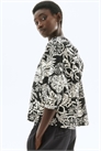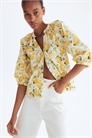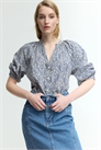 Блузка из хрустящего хлопкового поплина с небольшим воротником-бантом, V-образной проймой и пуговицами спереди. Рукава реглан длиной 3/4 с узкими манжетами. Подол прямого кроя.