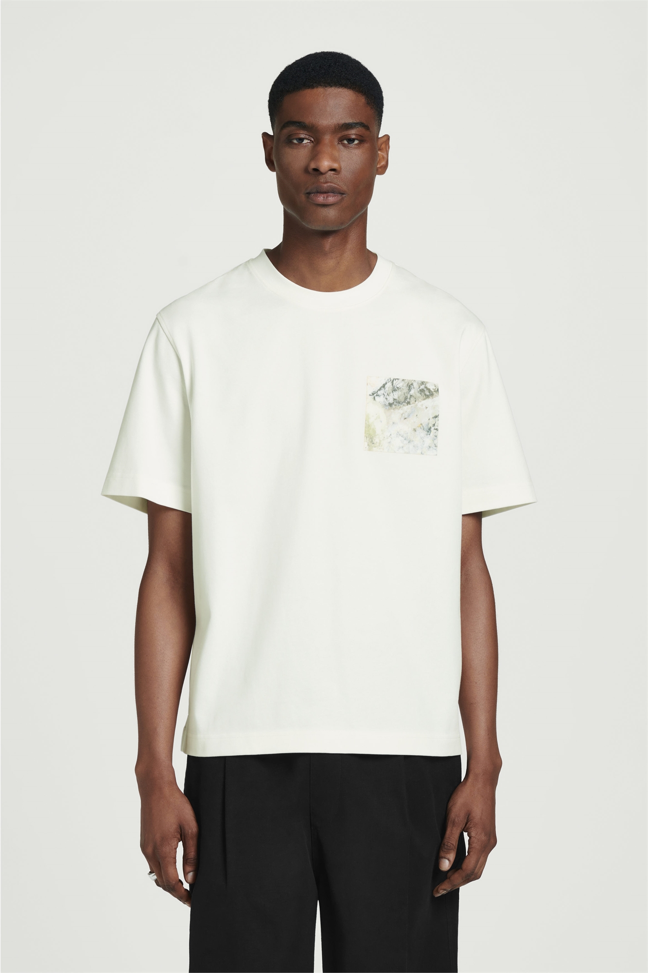 Эта футболка с мраморным узором выполнена в нейтральном белом цвете, который дополняет тональные оттенки рисунка. Она имеет непринужденный крой и сшита из мягкого хлопка-джерси плотностью 275 г. Свободный крой, 275gsm TENCEL™ является торговой маркой Lenzing AG. Лиоцелл TENCEL™ производится из возобновляемых древесных источников с использованием процесса, в котором перерабатывается 99% всех химических веществ и воды Оболочка: 100% хлопок. Ребро: 97% хлопка, 3% эластана. Нашивка: 100% TENCEL™ Lyocell. Без учета отделки / Машинная стирка Длина по спинке для размера M составляет 67,4 см / Модель носит размер M