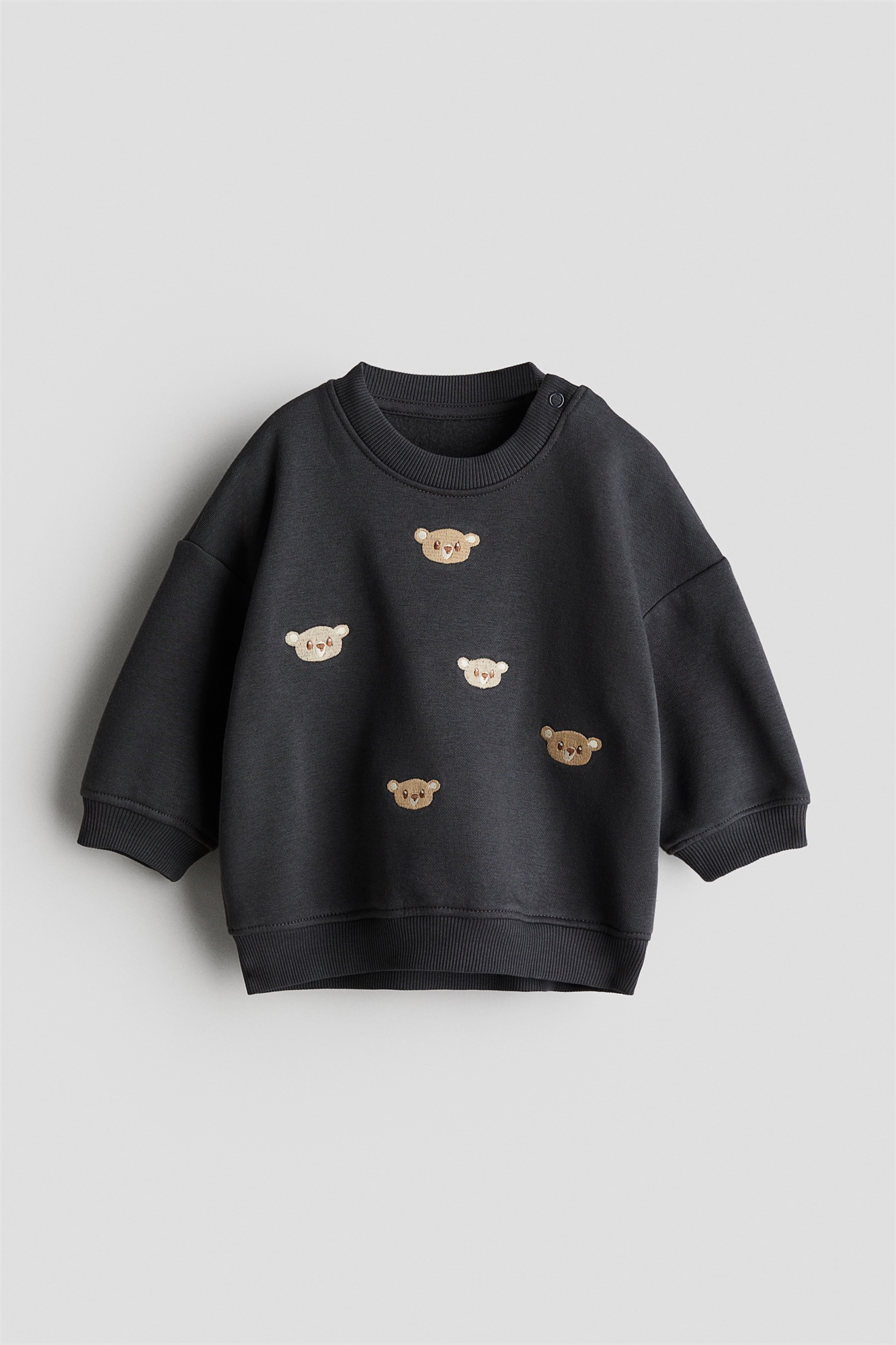 Топ с длинными рукавами из толстовочной ткани с мягким начесом внутри и мотивами спереди. Круглый вырез в рубчик с застежками с одной стороны (кроме размеров 2-4Y), спущенные плечи, манжеты и подол в рубчик.