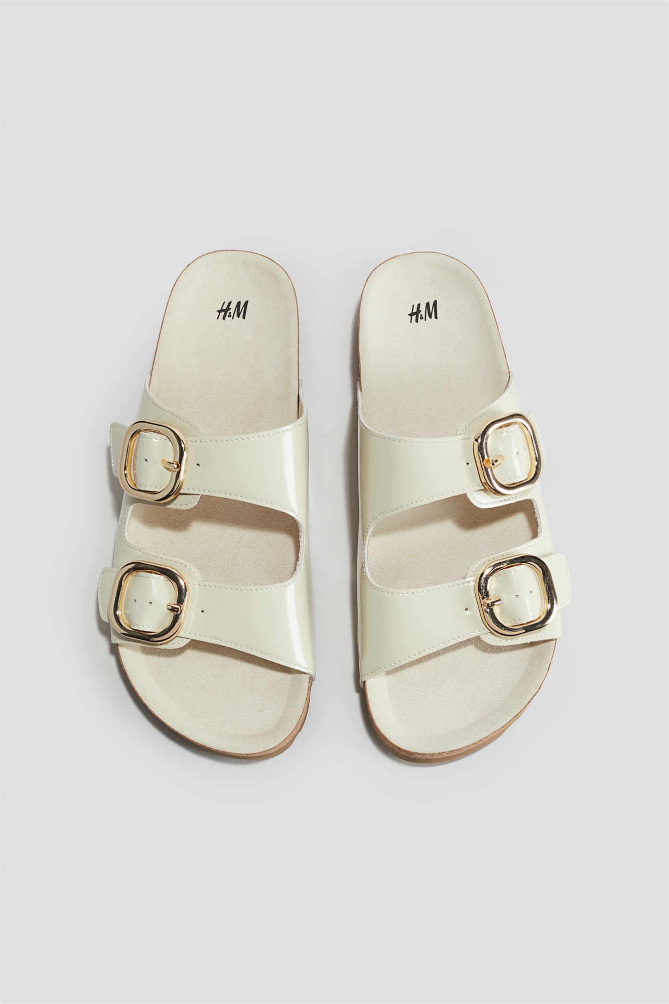 Сандалии с двумя регулируемыми ремешками с металлической пряжкой. Формованные стельки и рифленая подошва.