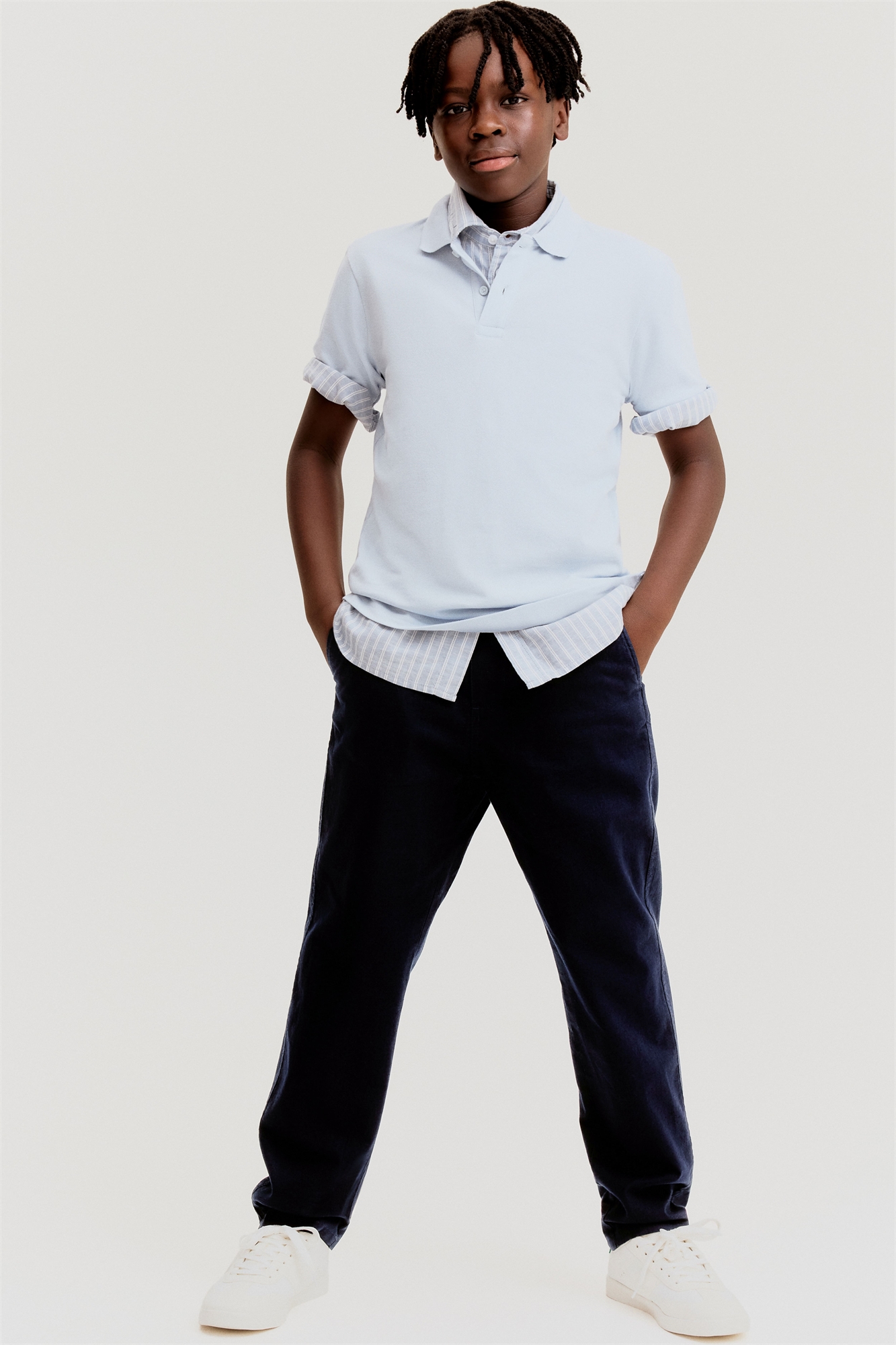 Брюки мягкого плетения из смеси хлопка и льна. Эластичный пояс с завязками, диагональные боковые карманы и накладной задний карман.