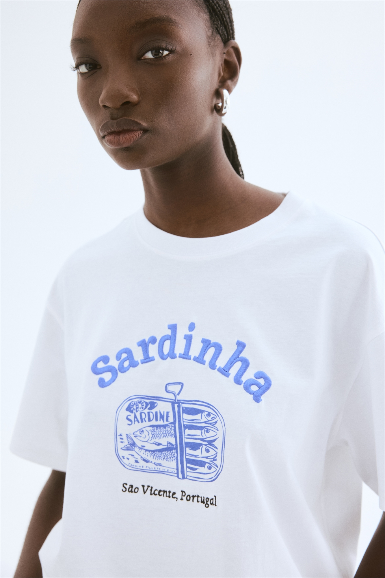 Футболка оверсайз из хлопкового джерси с окантовкой по вырезу горловины, слегка спущенными плечами и прямым покроем подола.