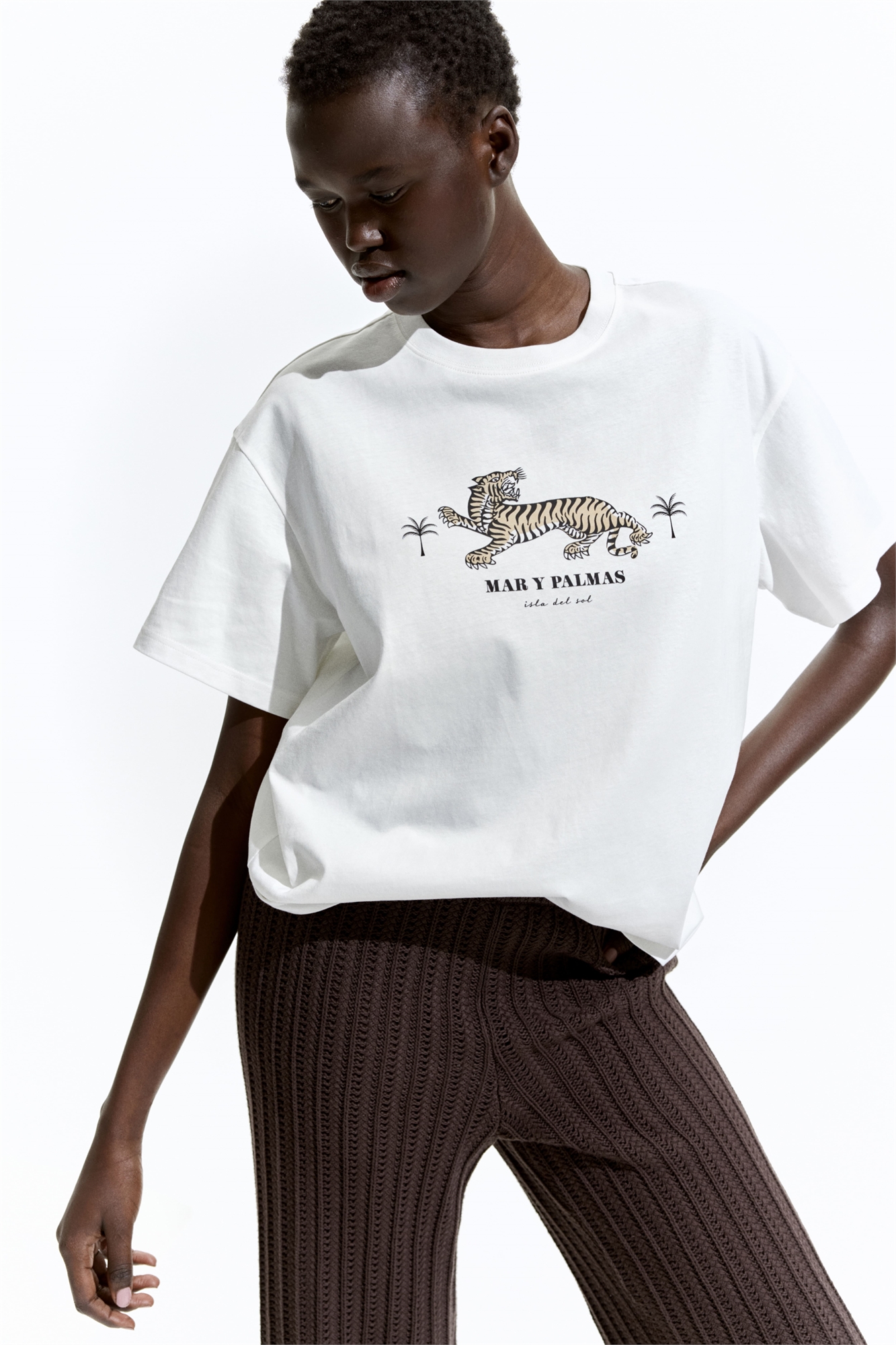Футболка оверсайз из хлопкового джерси с окантовкой по вырезу горловины, слегка спущенными плечами и прямым покроем подола.