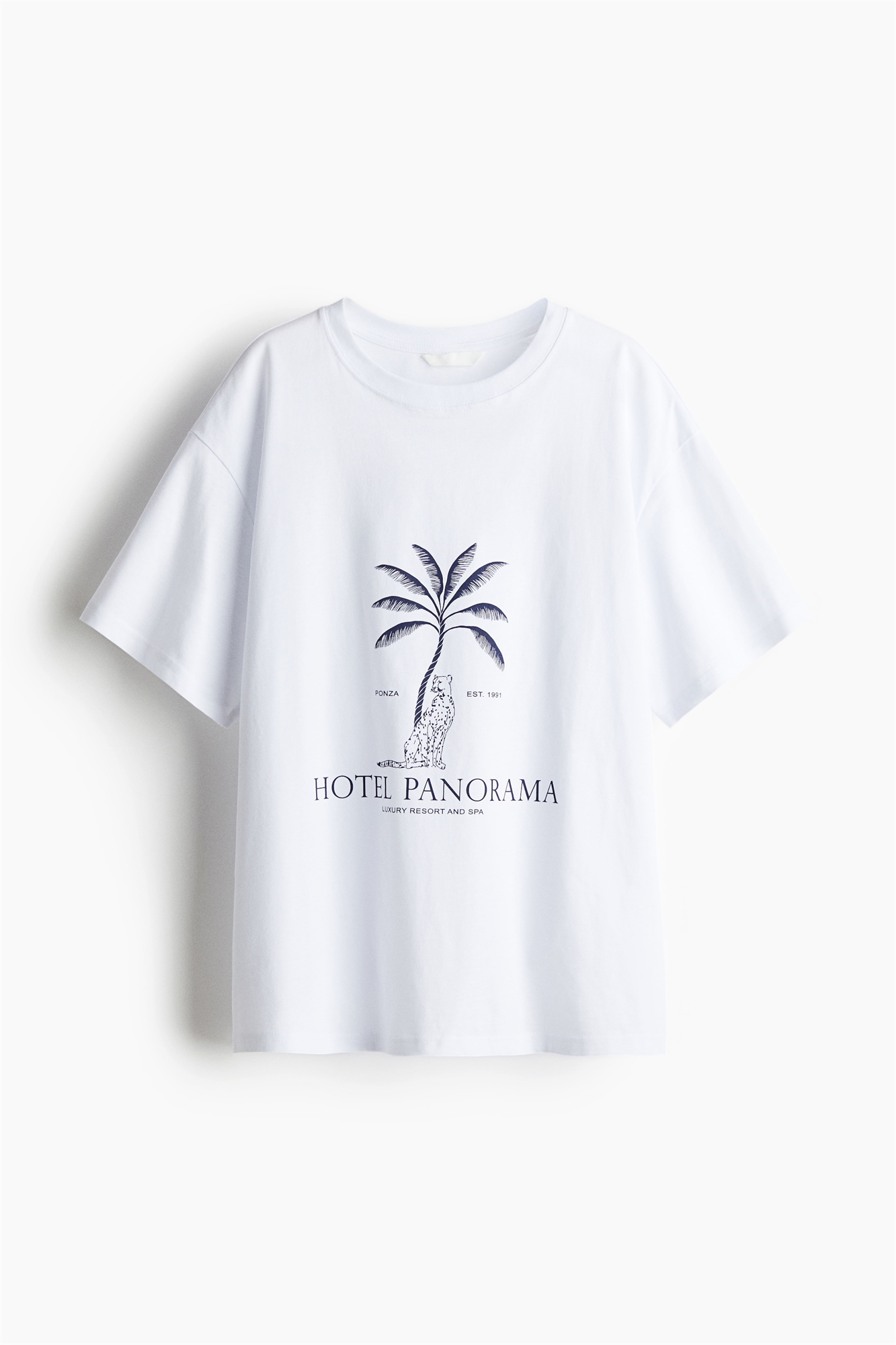 Футболка оверсайз из хлопкового джерси с окантовкой по вырезу горловины, слегка спущенными плечами и прямым покроем подола.