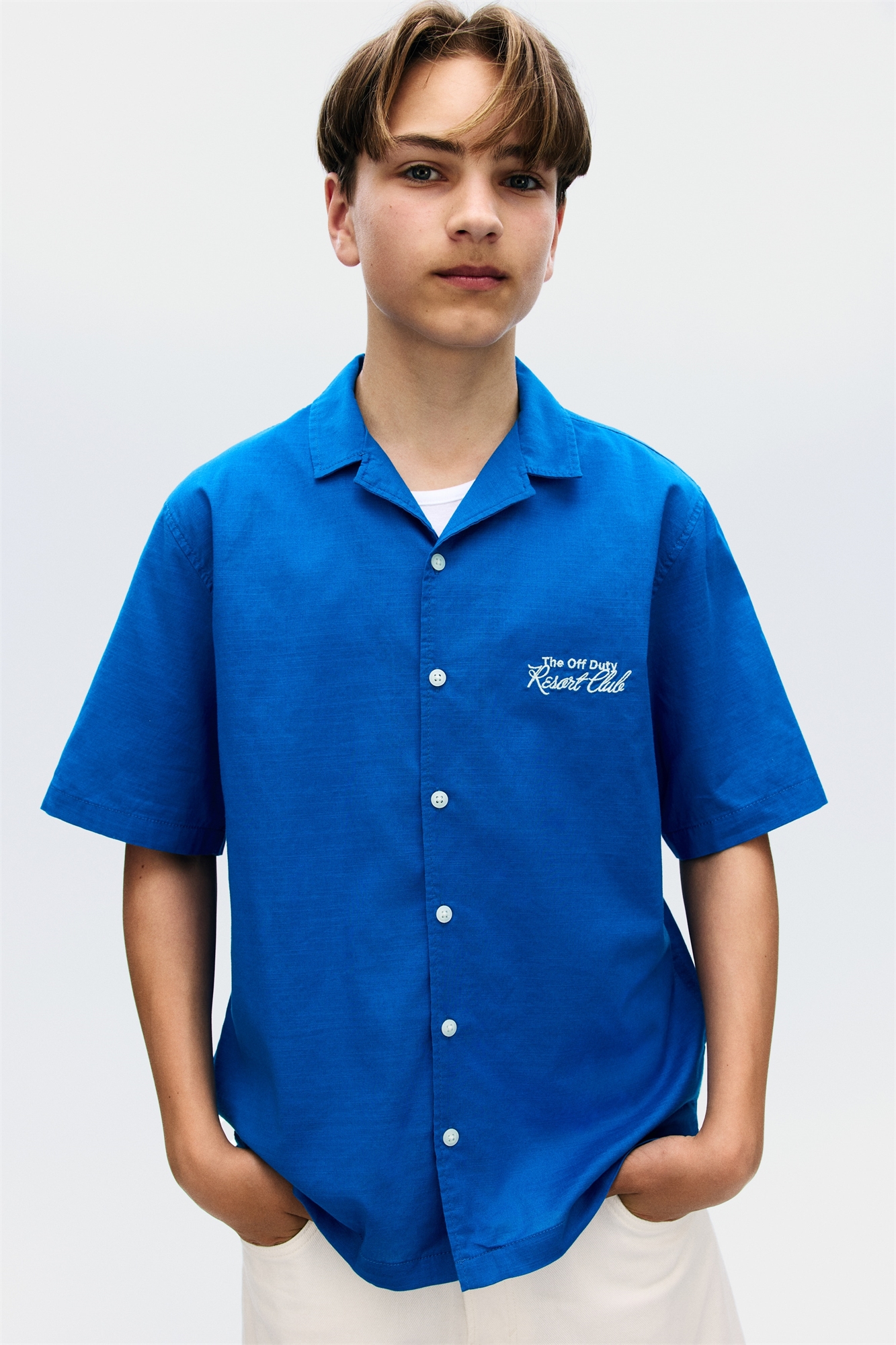 Рубашка с короткими рукавами из мягкого хлопкового полотна с курортным воротником и пуговицами спереди.