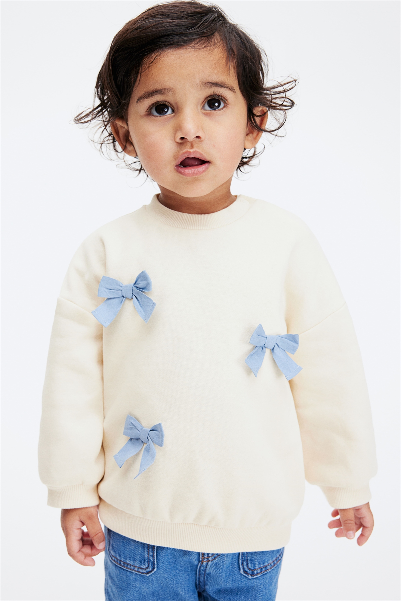 Топ из мягкой толстовочной ткани с круглым вырезом горловины с застежками с одной стороны (кроме размеров 2-4Y), спущенными плечами и завязками на манжетах и подоле.
