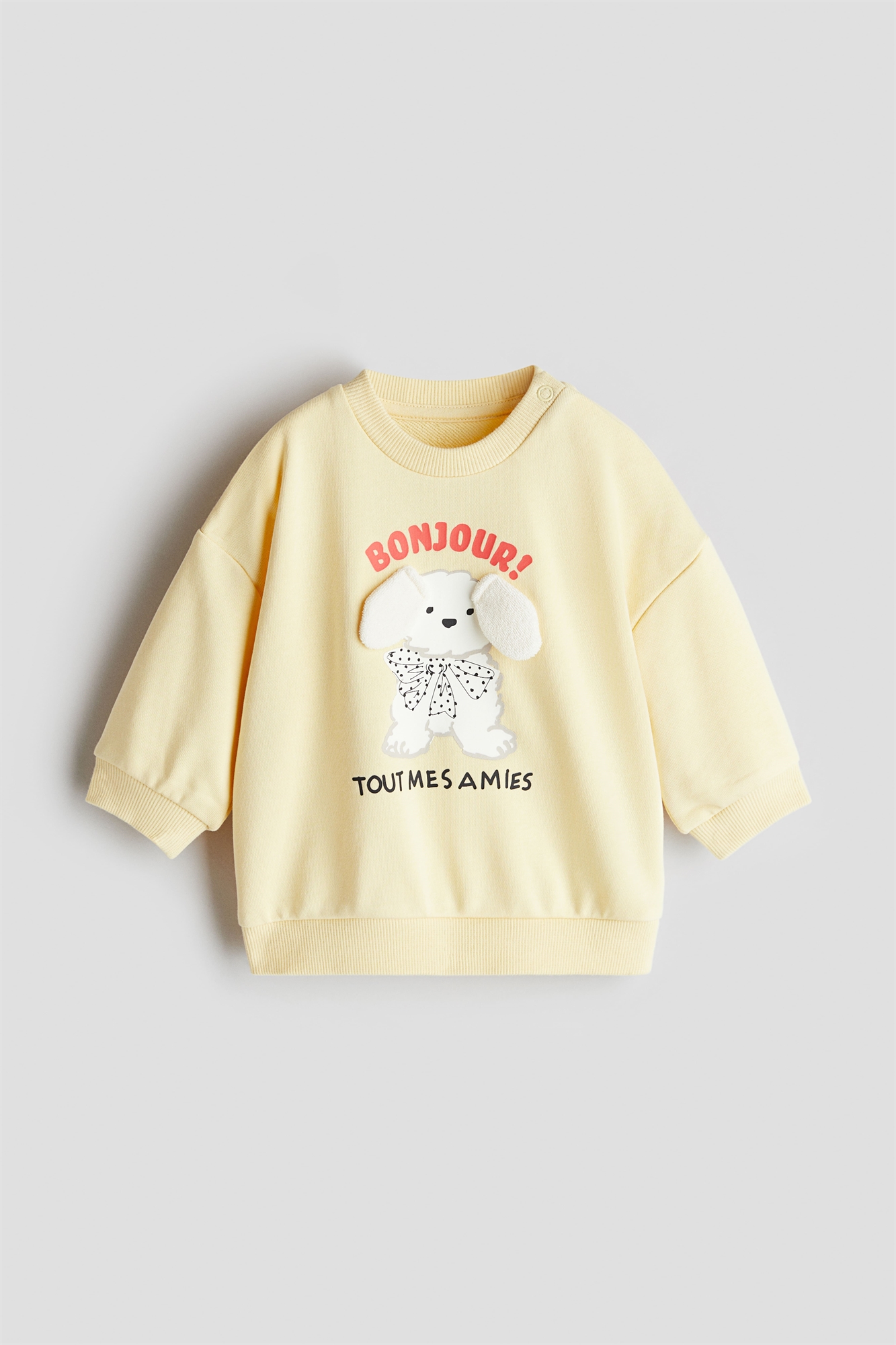 Топ из мягкой толстовочной ткани с круглым вырезом горловины с застежками с одной стороны (кроме размеров 2-4Y), спущенными плечами и завязками на манжетах и подоле.