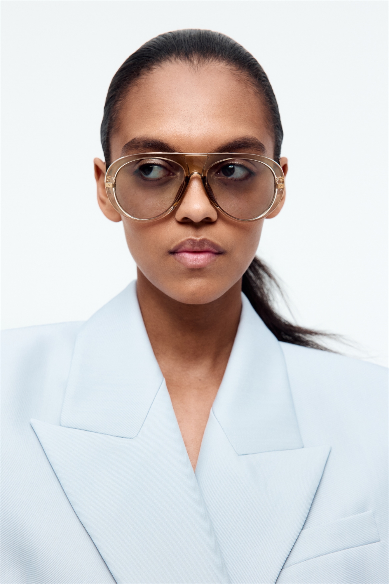 Солнцезащитные очки в стиле ретро с округлой пластиковой оправой и металлическими боковыми элементами. Тонированные пластиковые линзы с УФ-защитой.
