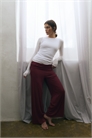 Спортивные брюки из ребристого трикотажа с широким отложным поясом и расклешенными ногами.