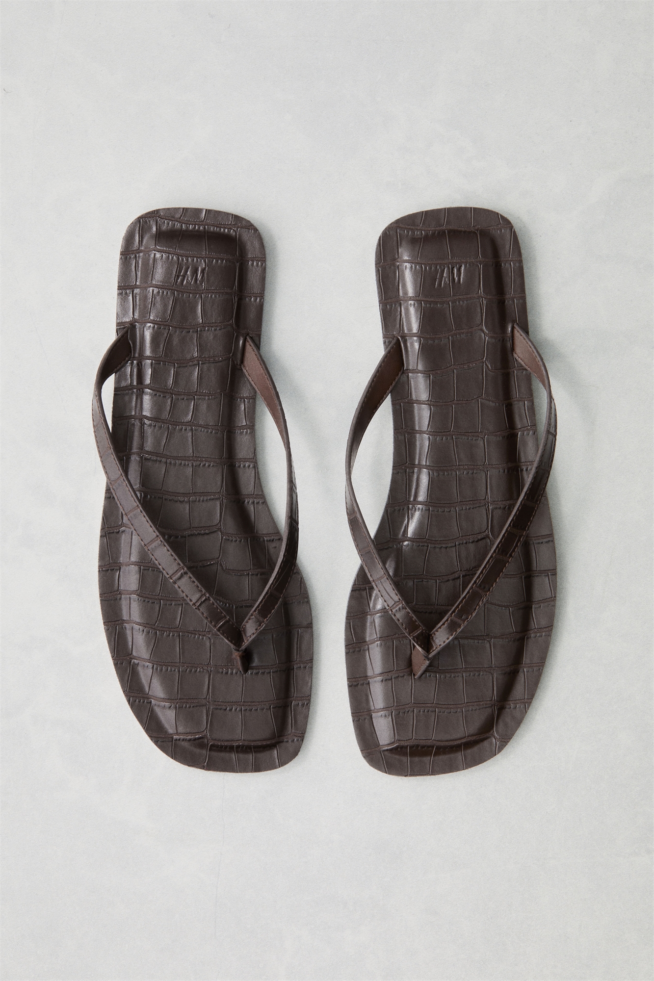 Шлепанцы из ткани с тиснением и покрытием, с квадратным носком и мягкой стелькой.